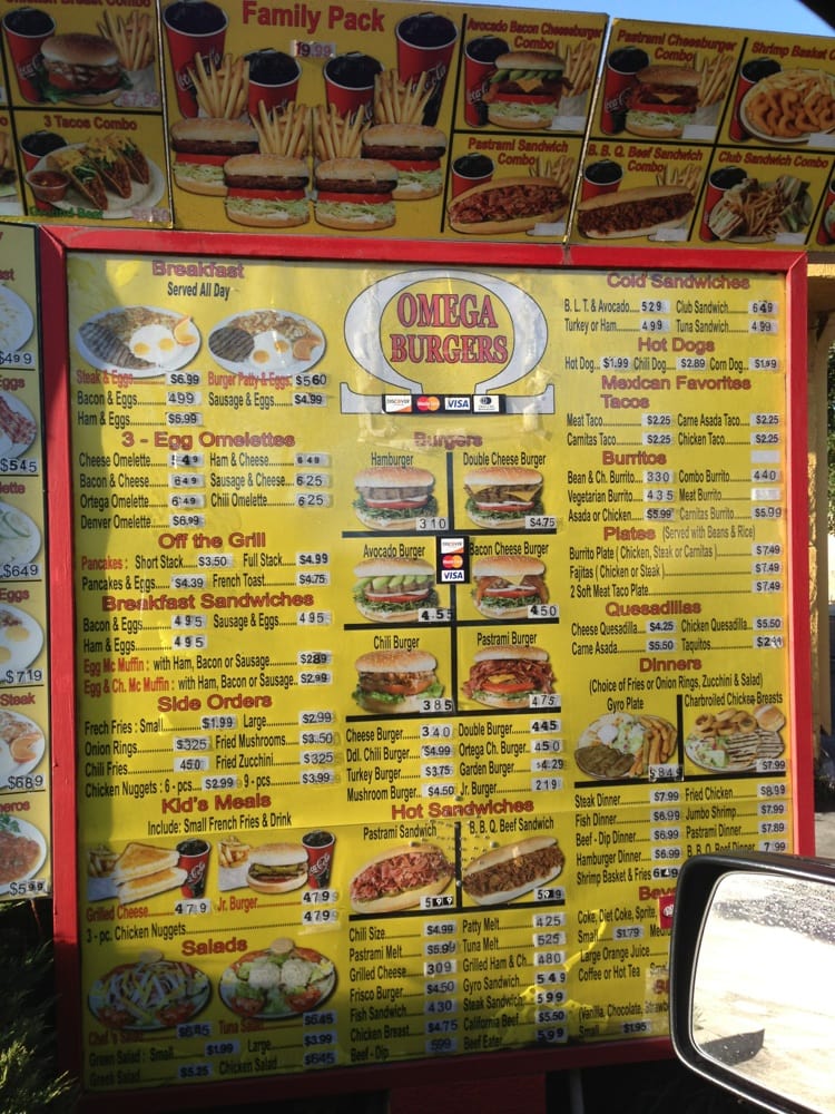 Introducing Omega Burgers Lakewood, a casual dining spot in Lakewood, CA, offering a range of delicious options. With breakfast burritos, plates, omelettes, and giant size burgers, there is something for everyone. Customers rave about the chili cheese fries, giant burgers, and flavorful dishes. The service is fast and the prices are reasonable. The menu boasts a variety of diner classics with fresh ingredients, perfect for breakfast, lunch, or dinner. Whether you're in the mood for a hearty breakfast burrito or a satisfying hamburger, Omega Burgers Lakewood has got you covered. Enjoy the generous portion sizes and friendly staff in a cozy diner atmosphere. Don't miss out on their homemade ranch dressing and chili pairing. Give Omega Burgers Lakewood a try for a filling and tasty dining experience.